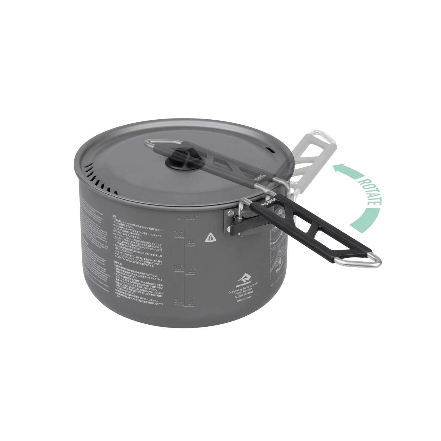 Using a hard anodized alloy, Alpha Pots are durable, abrasion-resistant and very easy-to-clean. They feature a Pivot-Lock handle that securely locks into place during use and folds away when stored, a unique slotted strainer pattern on the lid for easy flow (and to contain your spaghetti and rice!), and a silicone Lid Keep which hooks to the side of your pot when cooking.